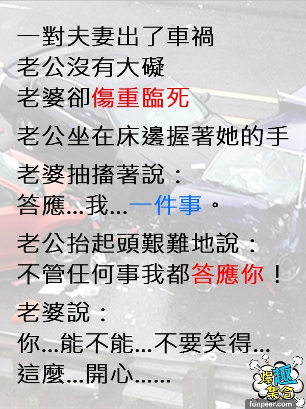 夫妻出了重大車禍,老婆傷重臨死,死前對著老公提出的最後要求竟然是…!