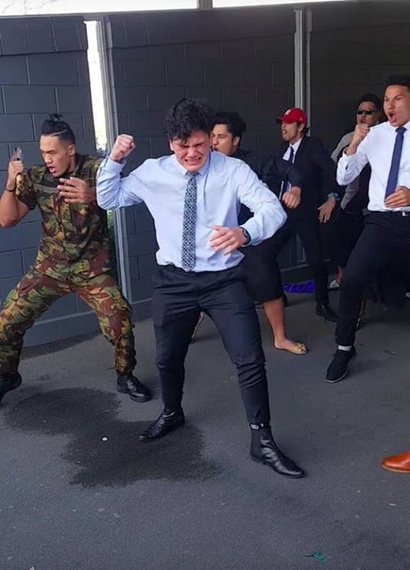 當然在傷心的葬禮也會跳…..這支瘋傳的影片中是一位17歲男孩「Jarom Hadley Nathaniel Rihari」的葬禮,朋友、同學們在他出殯的時候跳起毛利戰舞為他送別,穿著西裝的領跳跳到一半更是情緒崩潰,一度跳不下去,全身顫抖啜泣…….