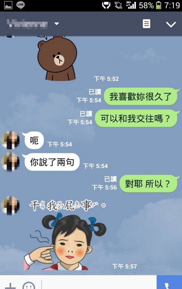 剛開始我們都沒什麼講話 直到她吃完鬆餅後我問她:「妳剛剛不是問我是不是玩真心話大冒險輸了嗎?」 她回:「嗯,是吧?」 我回:「喔,對啊」 再說:「不過我選的是真心話,我真的很喜歡妳,我知道昨天用line告白很瞎不過我是真的很希望妳加入我的精采生活。」 (我知道這是老梗,不過身為魯蛇我覺得能說出這句話對我來說已經跨出一大步了)