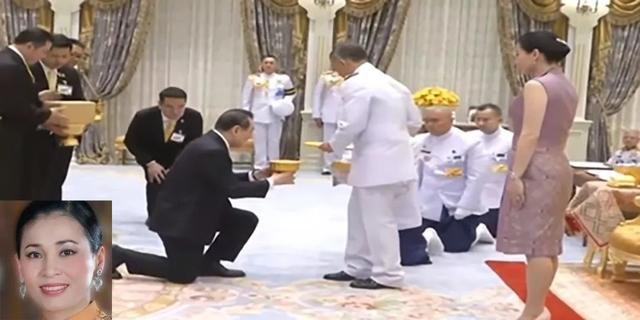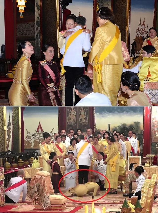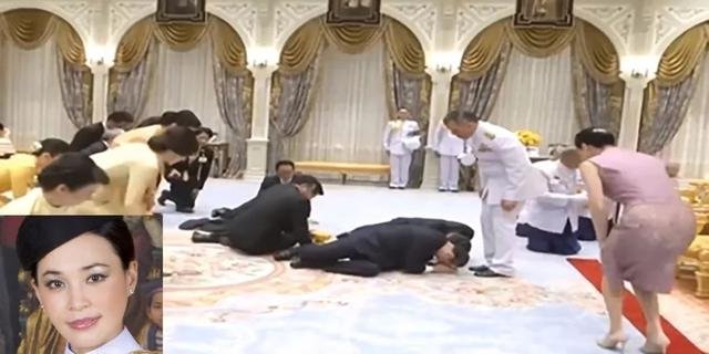 但蘇提拉王後這時突然下跪,因為她穿著短裙,所以行動有些不便。蘇提達王後穿著超高的高跟鞋,特意向後退了一步,先直著跪在地上,再側臥,行泰國的臥倒禮節,,動作也更加優雅。