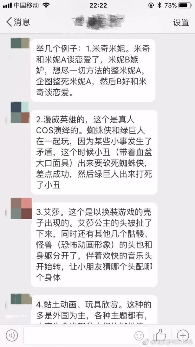 在微博上育兒博主@萌芽研究所BUD 就收到一些媽媽的私信,她們和孩子都深受兒童邪典片的危害。