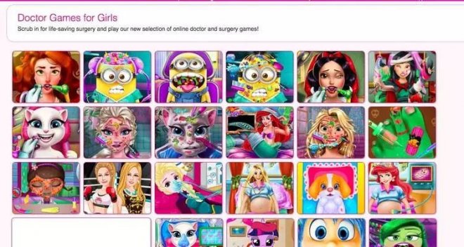 甚至這些網站對這些小遊戲的分類還有類似「治療」「手術」、「剖腹產」、「生孩子」這樣的搜索關鍵詞。