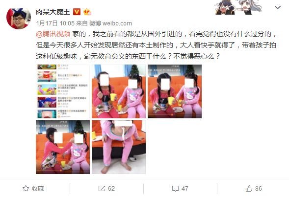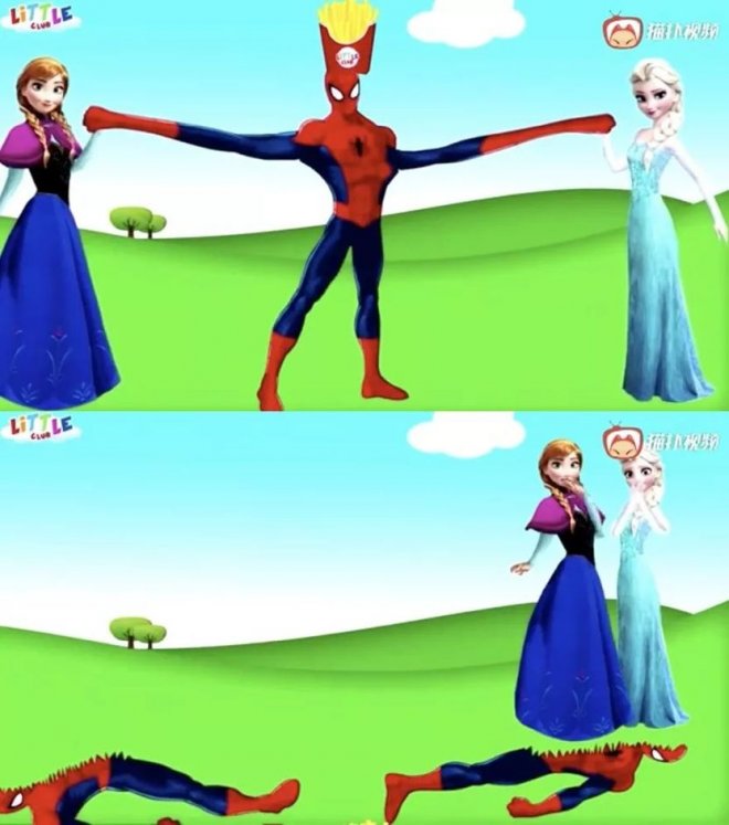 於是 中國版的「兒童邪典片」 應運而生,同樣用噁心的親子教育標籤,在各大視頻網站廣為流傳。