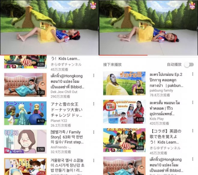 它們常以兒童最喜愛的卡通人物作為主角,二次加工成低俗視頻,利用小孩子的好奇心來賺流量和點擊量。