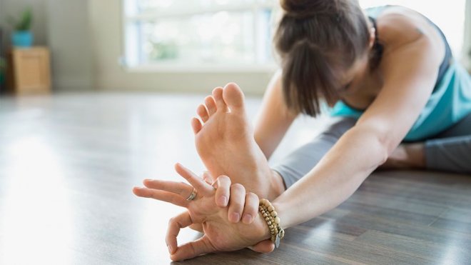 消蘿蔔腿瑜珈一:前彎伸展這是最簡單的姿勢,平常小編看電視時都會一邊做,是最有效針對小腿肌肉伸展的動作。