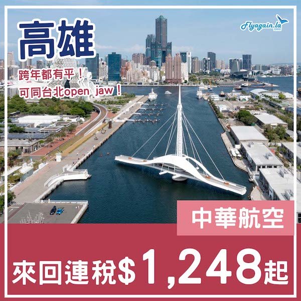【高雄】跨年都有平!可與台北open jaw!中華航空來回高雄連稅$1,248起!5月頭至12月尾出發