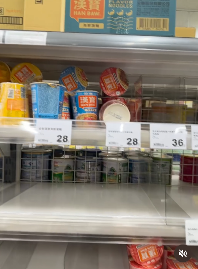據TVBS新聞報導,每次颱風來襲,各地掀起一波囤貨潮,尤其賣場泡麵區更是搶購焦點,有網友昨日在Thread上發文分享,逛賣場時看見泡麵架上全被掃光,唯獨「漢寶」泡麵數量依舊很多,且三款口味都是同樣情形,「這個是被排擠嗎?還是真的不好吃?」