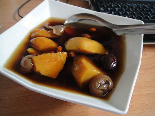 原料:生山藥100克,桂圓肉15克,荔枝肉三個,五味子3克。白糖、水適量。