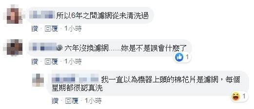事實上,空氣清淨機濾網每3個月就得更換一次,否則上頭會積滿細菌、髒汙,失去淨化空氣的效果,反而越吹越髒,「那個....濾網三個月就要換一次了,用了6年才發現,如果濾網有拆封的話,會成細菌溫床,很恐怖」、「就算拆了,吹了6年換也等於白吹呀!」