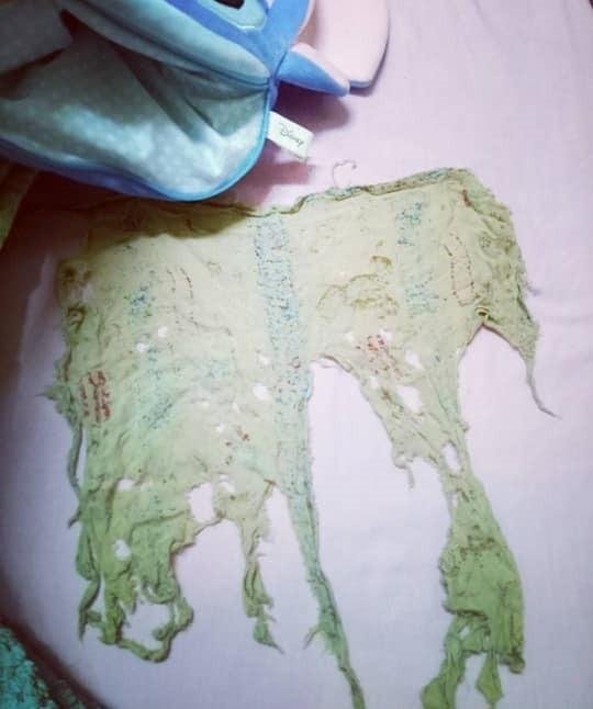 原PO表示,被子已經呈現乾乾硬硬的狀態,雖然聞起來沒有可怕的味道,但她最後還是忍痛掰了這條陪伴多年的回憶。貼文曝光後,網友們紛紛驚訝表示,「這抹布吧」、「裹腳布?」、「乾掉的變色龍」、「跟我現在的被被有點像,只是沒這麼乾」、「趕快拿去泡水救活它」、「怎麼可以離開被被2年,你必須去懺悔」、「我以為是被壓扁的綠鬣蜥」。