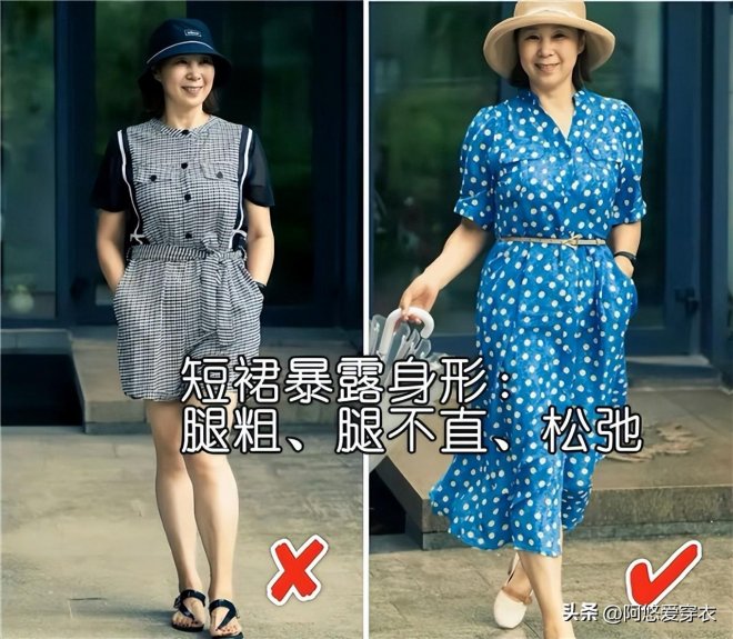 裙裝長度也要根據個人的身材來挑,就像很多中年女性身材發福,大腿粗,穿短裙特別容易暴露身材比例的問題。而且短裙本身對於年齡的要求也比較高,像中老年女性穿短裙,氣質方面也會不匹配。更推薦你們選擇稍微長一點的裙子,就像長度過膝的裙裝,遠遠比那些會露大腿的裙子更時髦呢。