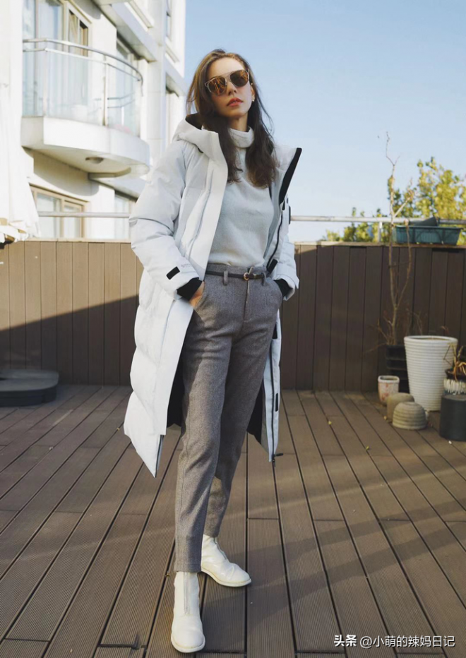 除了在羽絨衣的款式上選擇,羽絨衣的搭配也要有一定的技巧才行。而區別於裙裝,羽絨衣和褲裝的經典穿法是絕對不會出錯的。