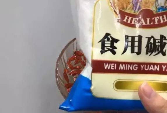 枸杞在晾曬的過程中,表面會非常折鄒,褶皺裡的塵土細菌是很難清洗出來的,所以還需要加入適量食用堿面或者麵粉,堿面有很強的吸附力,輕鬆吸附褶皺中的塵土。