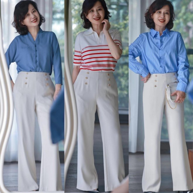 選對一件單品固然重要,但是對於大齡女生來說,最重要的還是懂得如何去搭配,選對衣服成功率40%,搭對衣服成功率才能100%。大齡女性可以嘗試一下T恤和高腰闊腿褲的搭配,不考驗身材還特別時髦。