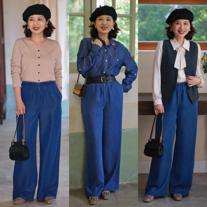相信很多身材五五分的女性,挑選褲裝都會格外謹慎,再加上下半身臃腫的情況,更要針對性的挑選褲型。像這種垂順性十足的牛仔闊腿褲,遮肉效果就非常明顯,而且舒適度滿滿。