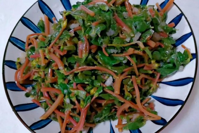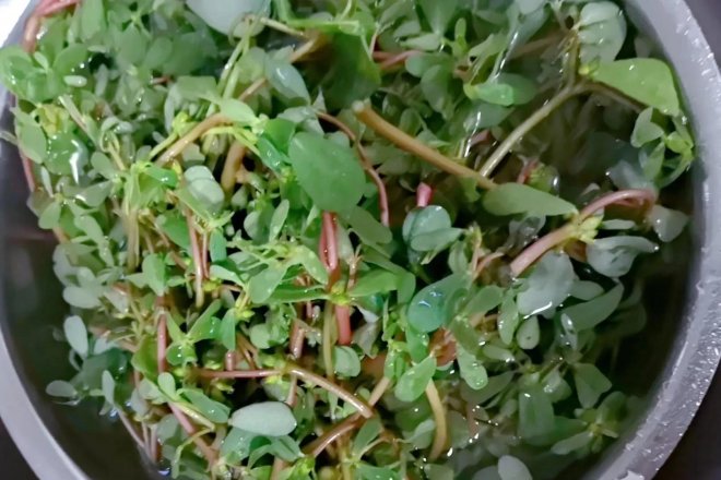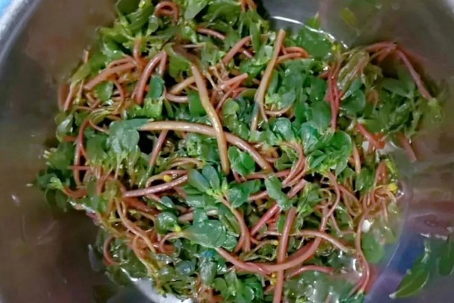 1、將摘回來的馬齒筧放到水裡清洗乾淨,鍋中燒水,水開起來以後把洗乾淨的馬齒筧倒進鍋中,並加入少許的食用油和食用鹽,水開之後再焯一分鐘撈出來過涼,然後擠干水分放到大碗里備用。