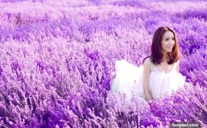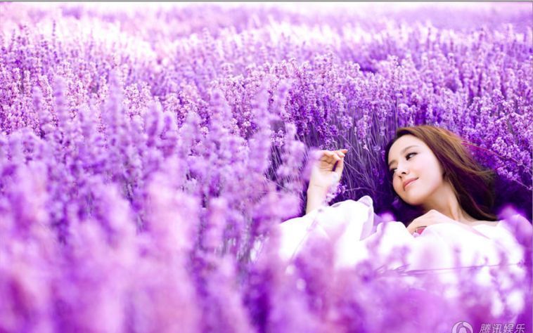 佟麗婭唯美寫真曝光置身薰衣草花海翩翩若仙