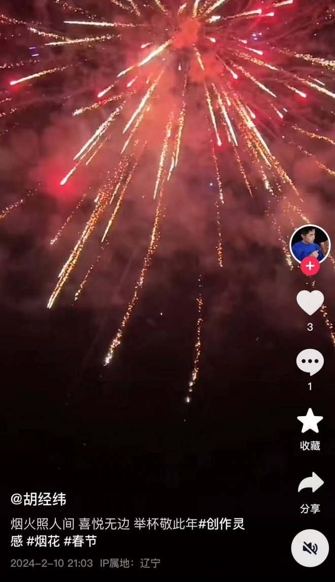儘管胡經緯的微博從2022年就已經斷更,但其短影片社交平台則是保持著穩定的更新,最後一次更新是在2月10日,也就是大年初一,他曬出觀看煙火的短片並配文寫道:「煙火照人間,喜悅無邊,舉杯敬此年。」這也說明,春節的時候,胡經緯還非常正常。