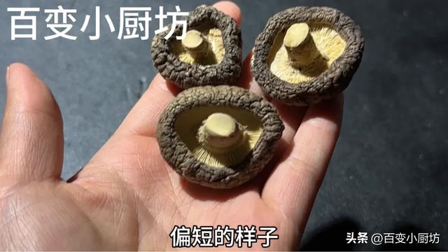 第三個方面,把香菇翻過來看一看菌桿的粗細,還有顏色,正常優質的香菇,它的菌桿顏色也是這種偏淺黃色的,如果發現菌感的顏色發黑或者是呈深褐色,那麼就說明是不好的香菇。