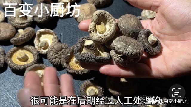 第二個方面來看香菇表面的顏色,我們挑選香菇的時候,看它的顏色是看它菌蓋的顏色,我們發現一些香菇它的顏色偏淺,而有一些香菇它的菌蓋顏色偏深,甚至是出現發黑的情況,那麼遇到這兩種顏色,我們盡量去挑選香菇表面看起來灰白灰白顏色較淺的香菇,而不要去選擇顏色比較深的香菇,因為它有可能是在晾曬之前就已經腐爛變壞,被晾乾製作而成的乾香菇,所以說呢,不建議購買。
