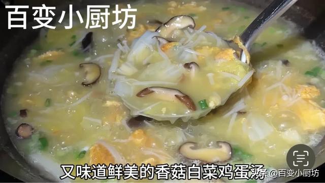 接著撒入一把蔥花進來。燙上10秒鐘的時間,一道既好喝又味道鮮美的香菇白菜雞蛋湯就熬煮好了,哇,真的是太香了,湯的顏色也十分的奶白,光看起來就食慾滿滿了,盛入碗中就可以美美的享用了香菇和白菜,這樣做出來超級鮮美,而且十分營養。