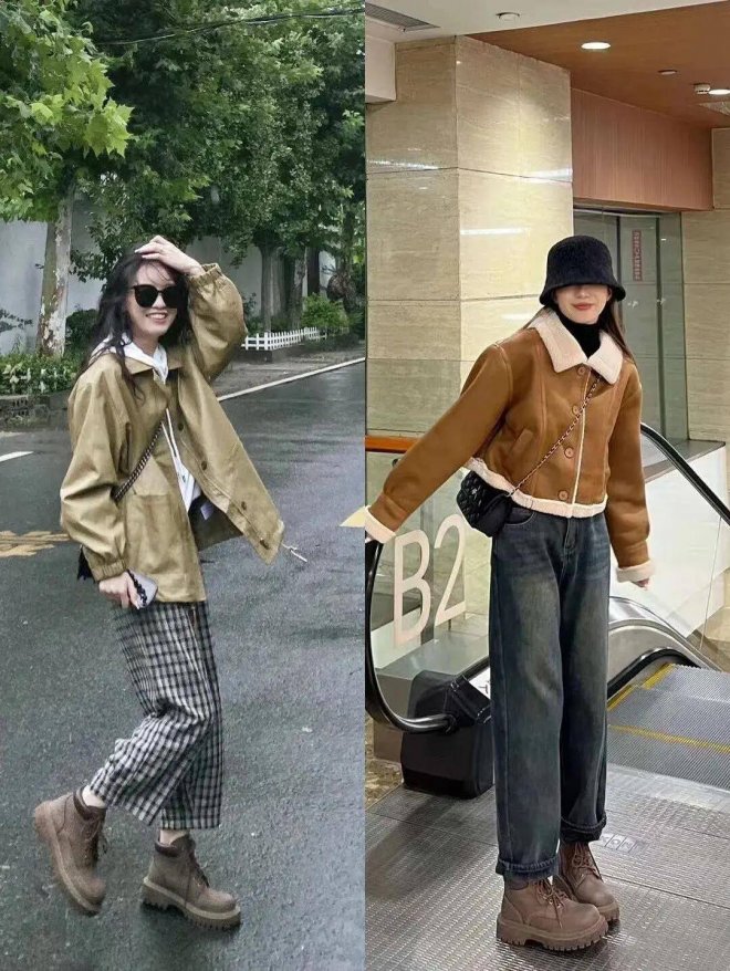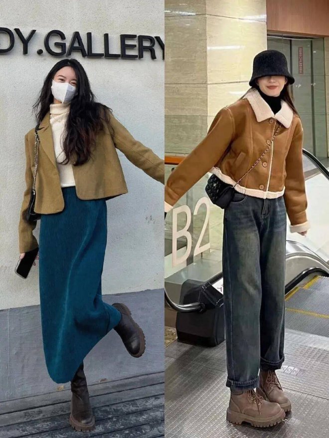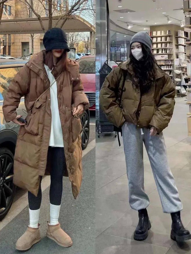 最近火了一種新穿法,叫「短外套或短羽絨+寬褲」,通勤時髦還很保暖,各種各樣棕色調的服飾在秋冬季節的穿搭頻率是很高的,展現一種成熟穩重的氣質和結合,大多數的顏色搭配起來都沒有違和感,這容性極強。