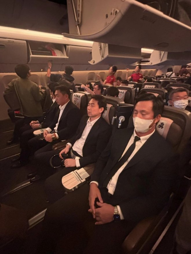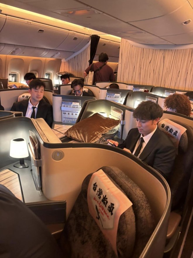 從照片中可見,林安可、黃子鵬、林家正與吉力吉撈·鞏冠等多名台灣隊球員坐在商務艙,至於教練團王建民、彭政閔、林岳平、高國輝,以及協會會長蔡其昌則是坐在座位相對較為狹小的豪經艙,原PO對此忍不住紅了眼眶,同時也形容王建民有一種「王者風範的低調!」
