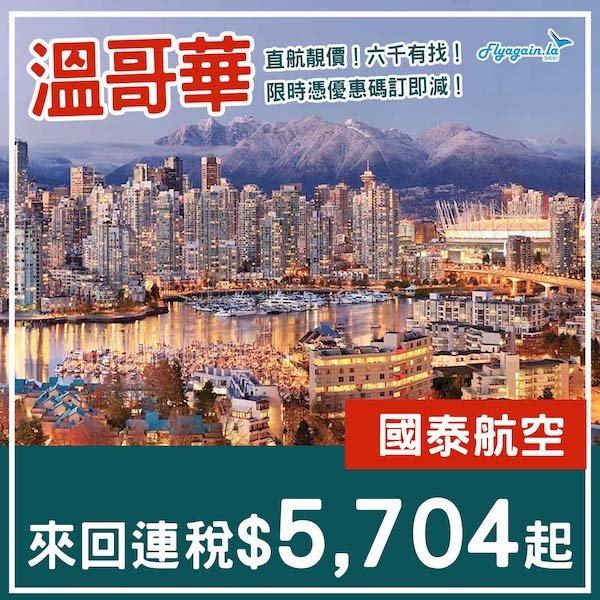 【溫哥華】又有啦!繼續六千有找!國泰航空直航來回溫哥華連稅$5,704起!9至12月指定日子出發