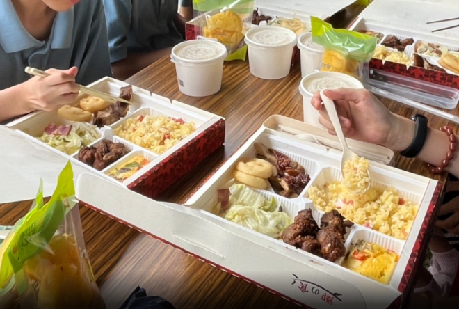 關於午餐,據悉是最早於上午9點30分烹煮完成,並於11點30分、12點30分以2批形式配送,最晚則在下午1點30分飲食結束。其中,可能造成影響的菜色有什錦黃金炒飯、照燒雞腿排、椒鹽排骨、培根炒高麗菜、烘蛋、酥炸微笑薯餅。而校方在不久前也開啟危機處理流程,用Google表單確認學生這2天的飲食情況。台中新社農會也在事發後派人北上,強調此次活動不會收費,並會為此負起學生就醫、善後責任。