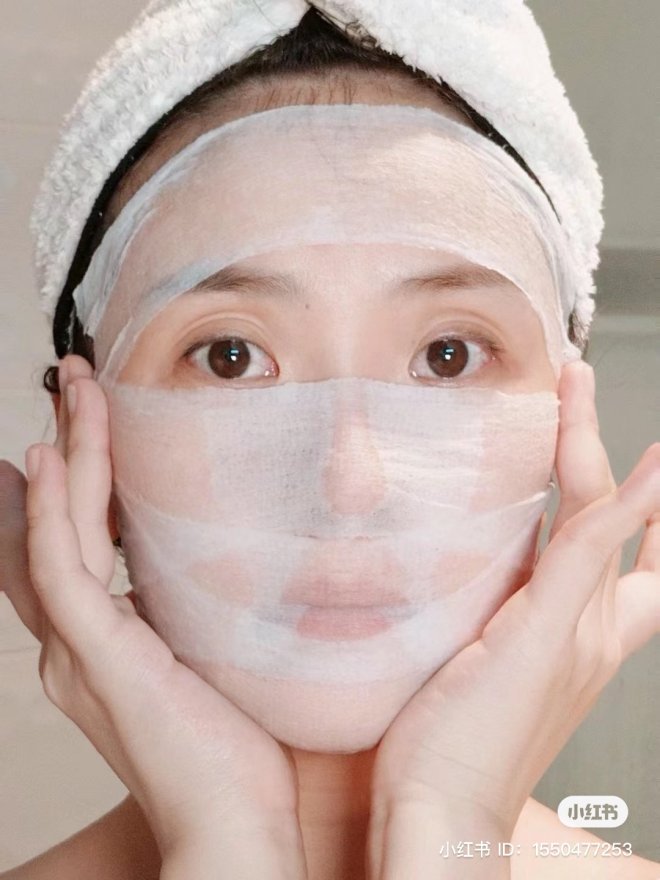 步驟四:濕敷敷臉10分鐘後,將化妝棉翻面,再次貼在臉上,再敷10分鐘。這樣可以確保肌膚充分吸收保養品中的營養成分。