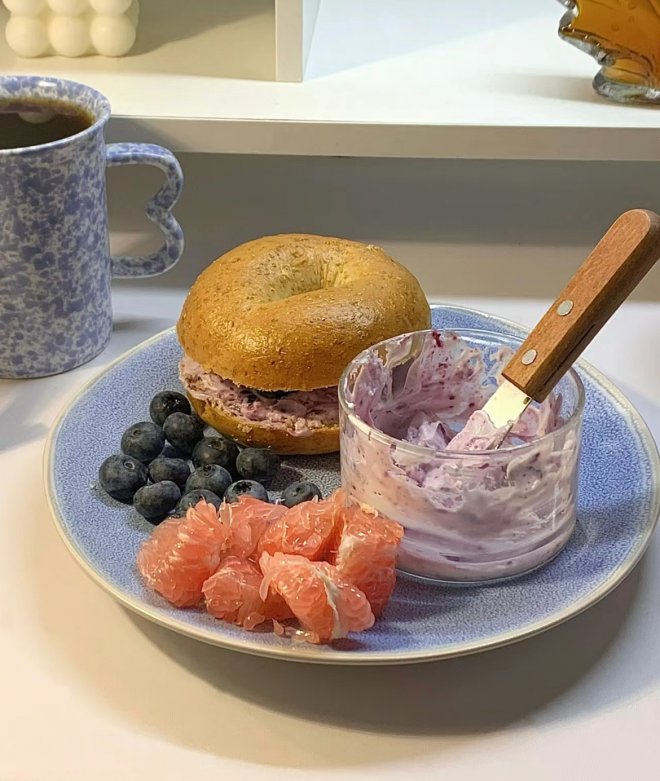 健康美式早餐推薦-全麥貝果+優格醬(360卡)全麥貝果提供了纖維和複合碳水化合物,有助於提供長效能量,同時優格醬則提供了優質蛋白質和益生菌,有助於促進腸道健康和消化。這個搭配不僅口感豐富,而且營養均衡,是一個理想的早餐選擇!
