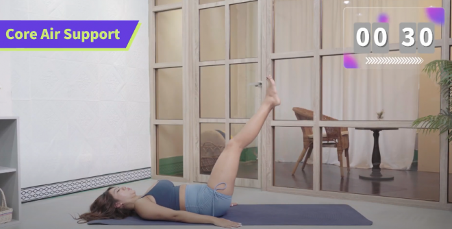 核心空中支援這個動作要維持三十秒,雙腿千萬不能上下晃動,盡量維持一樣的高度,這時就能感覺到腹肌拼命在使力ㄍㄧㄥ住啦~