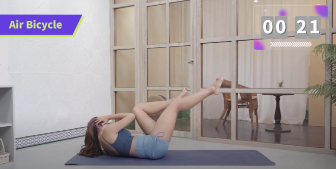 空中腳踏車空中腳踏車也是核心鍛鍊中非常基礎的一個招式~可以的話一組三十秒,每天至少做個五組吧!