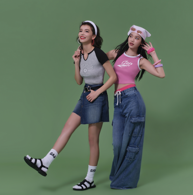 例如Gap「復古休閒Modern Preppy系列」就保留經典校園美式風格,短版修身版型加上彈性羅紋質料,搭配潮流百搭高腰牛仔褲,讓女孩們展現火辣的身形曲線;男生也透過撞色設計打造T恤、棒球襯衫等,輕鬆豐富搭配層次。