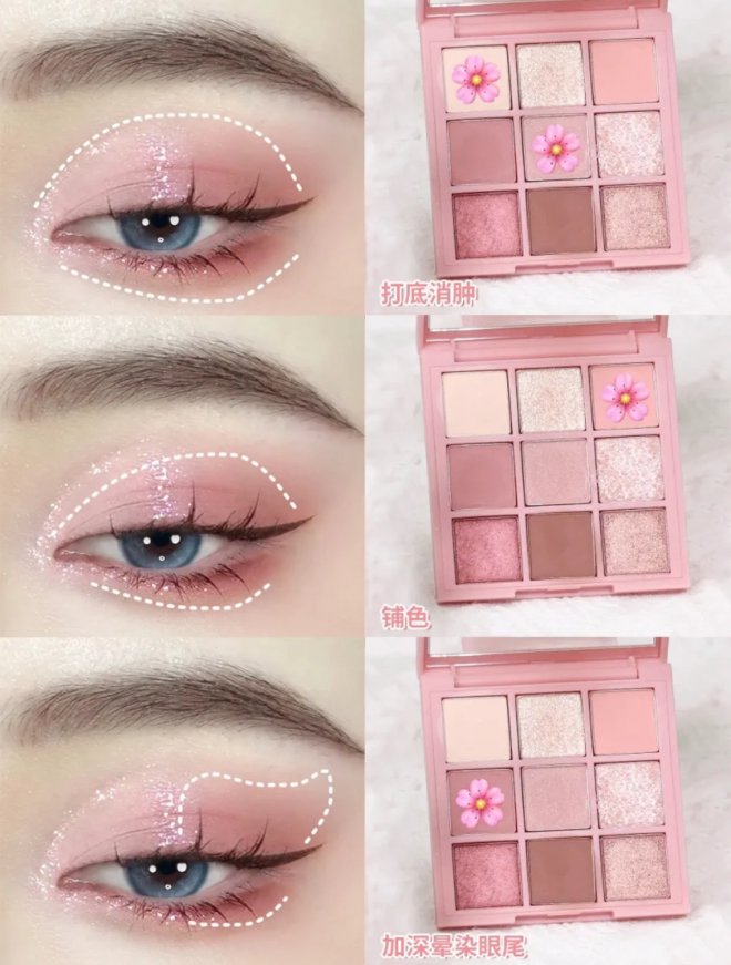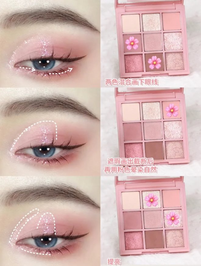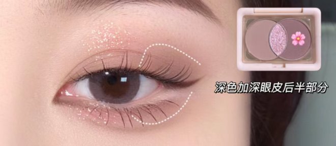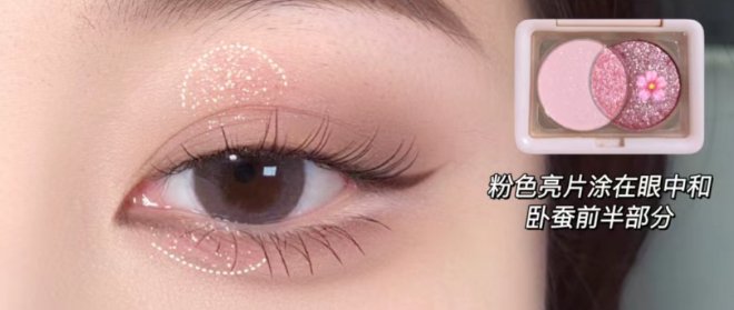清甜學妹眼妝怎麼畫?低飽和櫻花粉統一眼妝色調,吸睛閃片點亮眼眸,上眼加載韓系嫩妹感;
