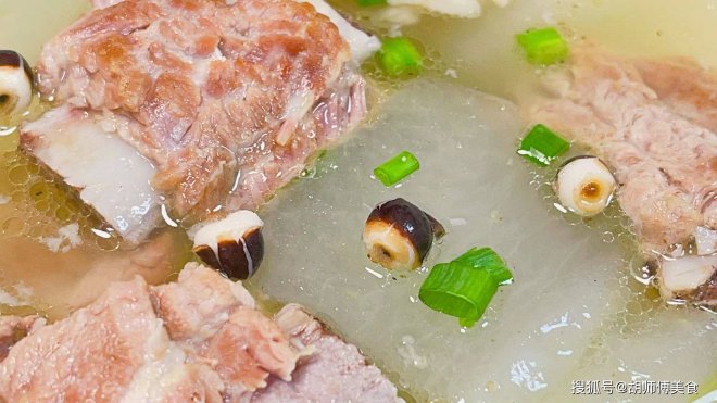 3、將排骨、芡實和適量的熱水放入砂鍋中,將它們燉25分鐘后,再把冬瓜、食鹽放入鍋中,繼續燉25分鐘,最後撒上少許雞精、蔥花即可起鍋食用。