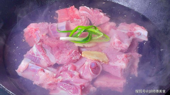 2、鍋中放入少許冷水,然後將排骨放入鍋中,大火將其焯水10分鐘撈出,接著再用流水將排骨沖洗乾淨。