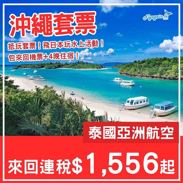 【沖繩】飛日本玩水上活動!沖繩5日4夜套票,包來回機票+4晚住宿,每位連稅$1,556起!6至10月指定日子出發