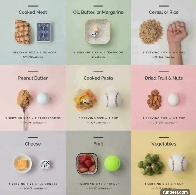 而對於每一種食物的食量控制康納也總結出了一套 「參照物比對法」▼