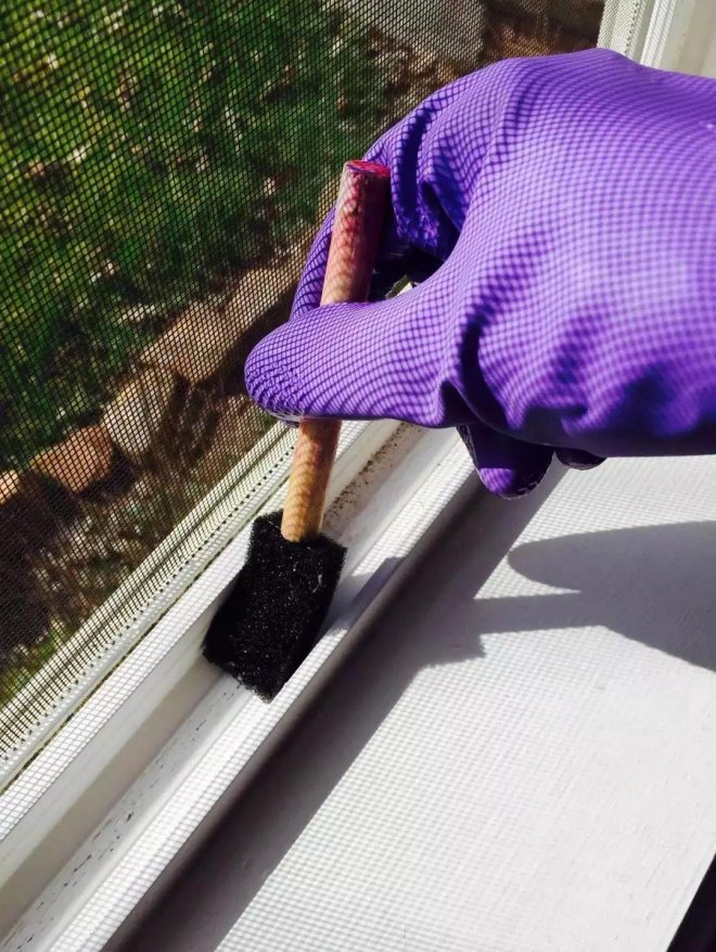 沾上白醋水,沿著窗戶縫擦一擦,污漬就都轉移到海綿上了!
