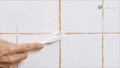 瓷磚縫變黃變髒不好清潔,但只要遇上牙膏,再髒的縫隙都能清潔乾淨。擠一些牙膏出來,用舊牙刷反覆擦縫隙。