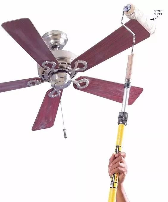 用白醋和水按照1:10的比例混合在一起,沾濕長柄拖把,伸到扇葉處,即可清潔扇葉上的污漬。