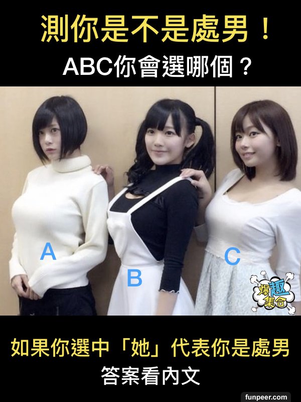 【不是心測】測你是不是處男 ABC你會選哪個?