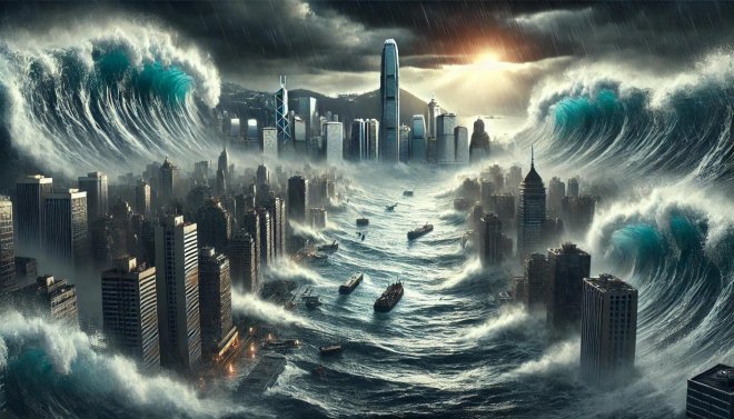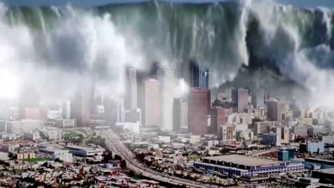 - 海嘯高度驚人,吞沒整座城市