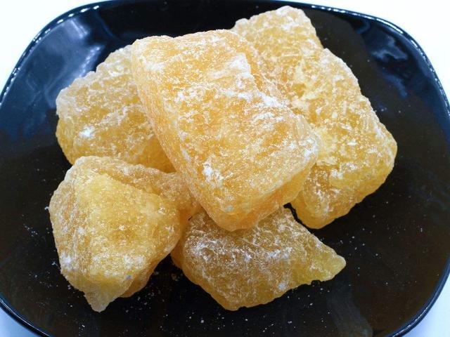 首先純白色的單晶體冰糖的純度要高些,味道甜美,沒有異味,也有光澤。很適合做奶茶,拿來泡茶或者直接吃也比較方便。