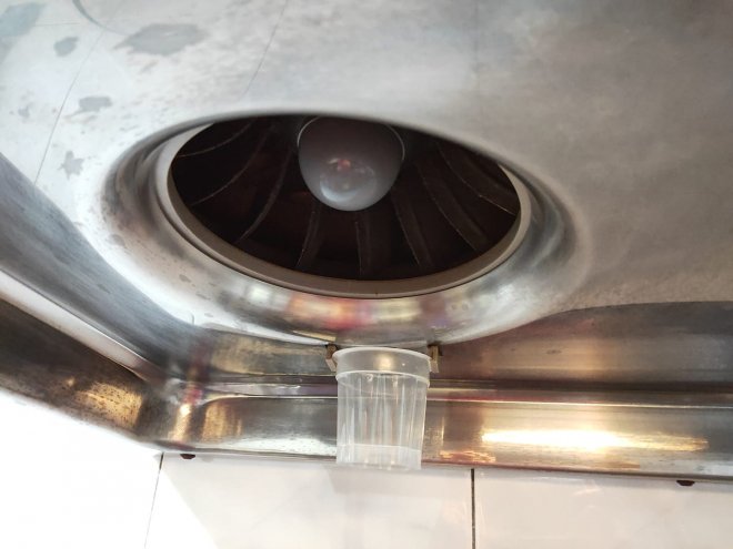 一名女網友在臉書社團《我愛全聯-好物老實説》分享,家中的抽油煙機照,畫面中可見,她把吃完的布丁杯洗乾淨後,嵌入在油煙孔上,作為集油杯,讓自己後續清潔更加省時省力。她也大讚「想不到布丁杯,還可以當抽油煙機的漏油杯,超實用的!」