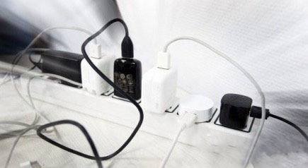 辦公室、床頭,甚至洗漱間,插座上都準備了充電器以便充電?