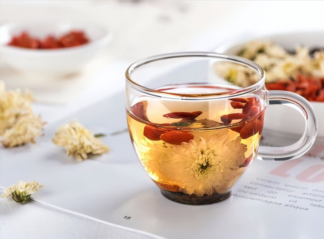 其中包括菊花茶、枸杞子和蜂蜜水。