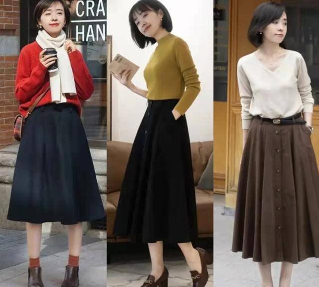 呢子過膝裙柔軟舒適又保暖,可以從淺秋時節穿到春季,搭配上也很多元化,無論用來配時尚衫、毛衫、西裝、風衣還是大衣,毫不費勁營造出溫馨暖和的秋冬感。