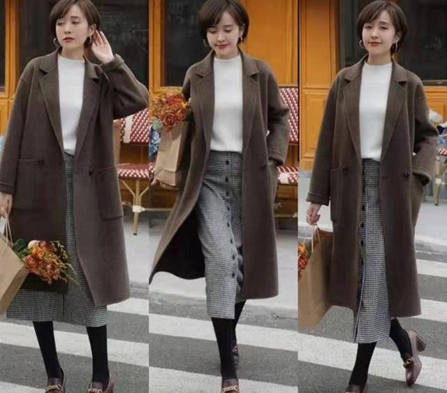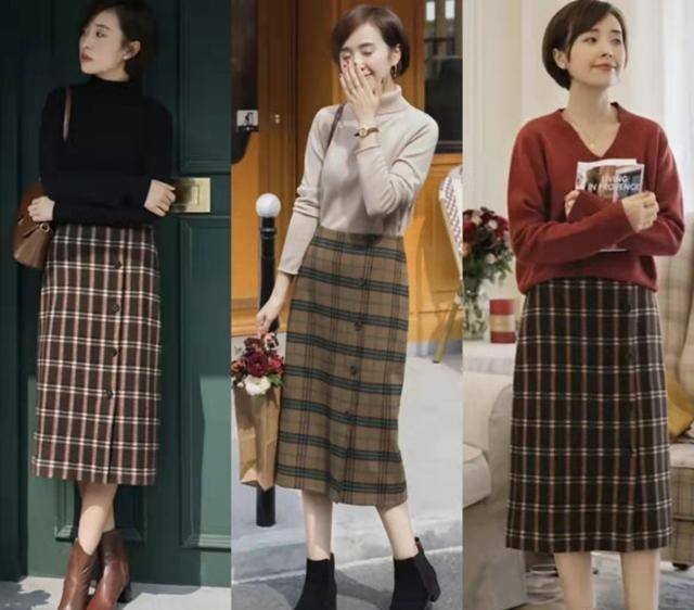 尤其是疊加格紋或者菱格紋的直筒呢子過膝裙,既文藝懷舊,又可以展現出40歲女人的精緻感。